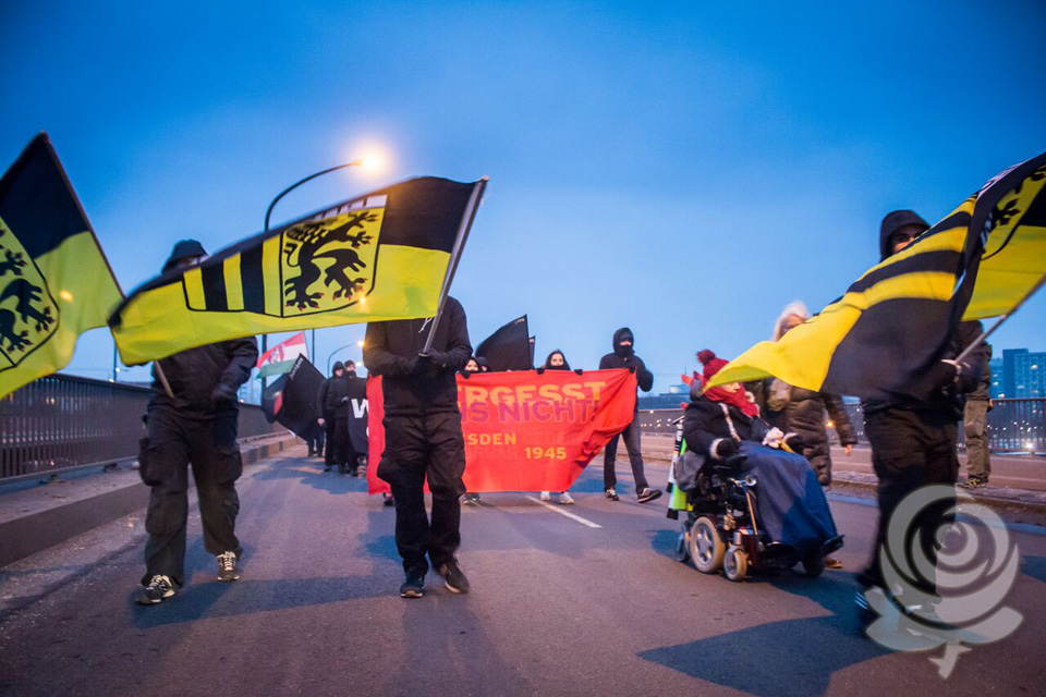 „Entweder es findet seitens der Nazis gar keine Aktion statt oder aber eine Aktion, die sich im Level mit der Aktion vom 12. Februar 2014 decken könnte… …Wir wissen, dass seit Anfang des Jahres mobilisiert wird. Wir wissen auch, dass die Aktionswoche der Nazis im verkleinerten Rahmen stattfinden wird. Insgesamt sind die Möglichkeiten durch den Wegfall der Finanzierung über die NPD-Landtagsfraktion deutlich geringer“.